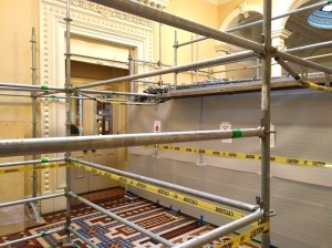 Preparations began this week for a project to restore the original ceiling finishes in the court side of Osgoode Hall. The actual repair work will take place weekday evenings after 6:00 PM.