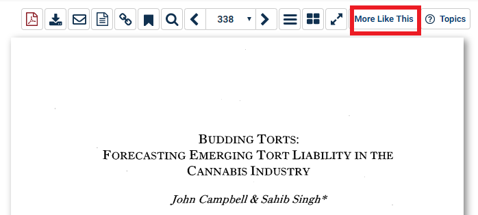 3. Click on the “More Like This” button found at the top of the screen when you’ve opened a document. This will generate a new list of articles topically similar to the original document.