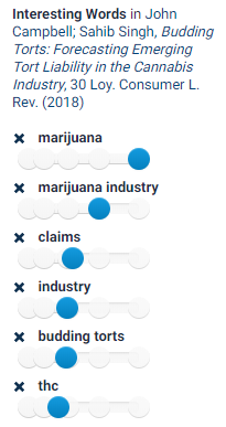 For example, I am searching for articles on the issue of product liability in the cannabis industry. Let’s use “cannabis product liability” as our search term.
