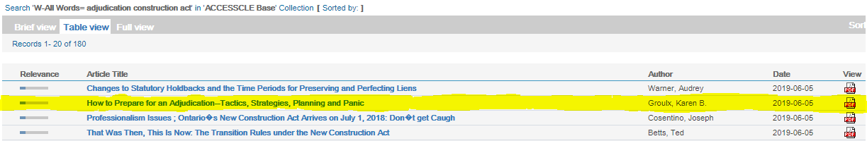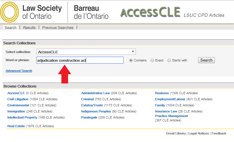 Here’s a sample search for information on adjudications under the new Ontario Construction Act: