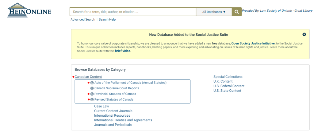While many know that HeinOnline is a great resource for secondary source material like journal articles, it’s important to remember that it is also a great resource for digitized copies of federal and provincial statutes. Another important thing to remember: all Law Society of Ontario licensees enjoy digital remote access to HeinOnline through the Great Library.