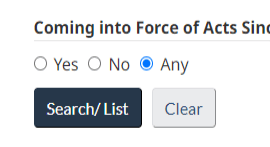 TIP: While you can search by Act name, for thoroughness, scroll through all the most recent OICs filed after the latest Gazette or after the Justice Laws currency date. Leave the search boxes blank and click Search/List to see all the latest Orders filed.