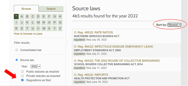 - New source law is usually published on e-Laws within two business days. To view the newest regulations: