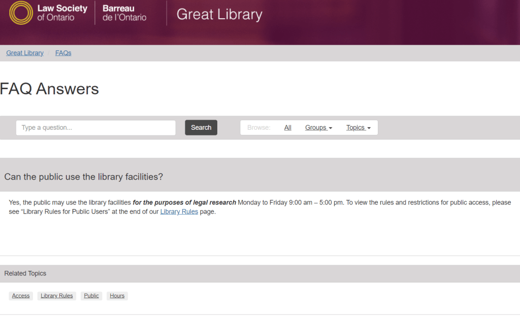 Once you click on a question that matches your keywords, you will be directed to a page with an answer written by Great Library staff.
